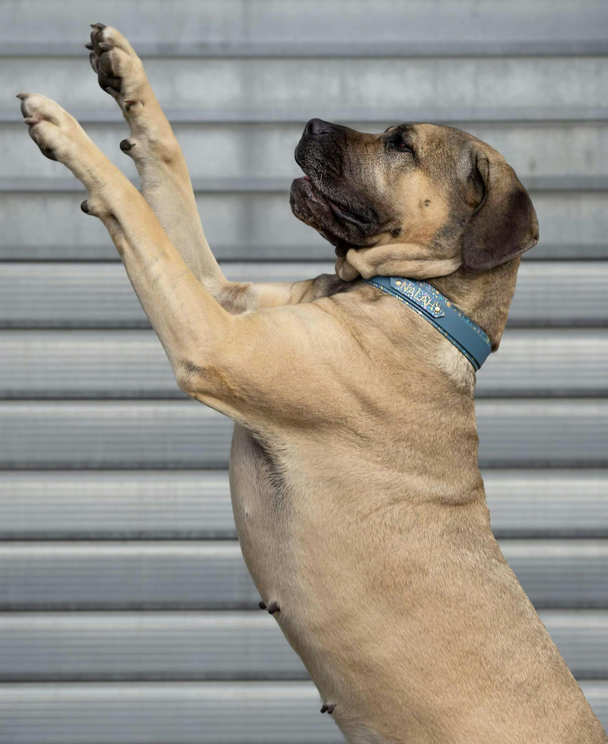 Auf Wunsch kannst Du das Halsband noch personalisieren lassen. Bitte gib im Kommentarfeld den Namen Deines Hundes und die Schriftart an.